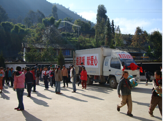 到困難山村發(fā)放物資