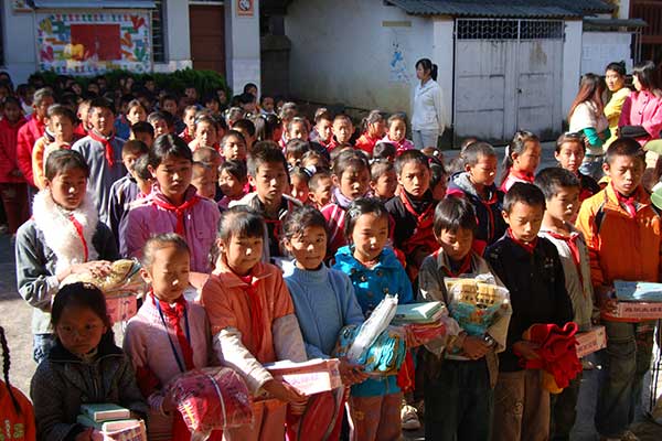 捐贈(zèng)山區(qū)兒童書(shū)包學(xué)具